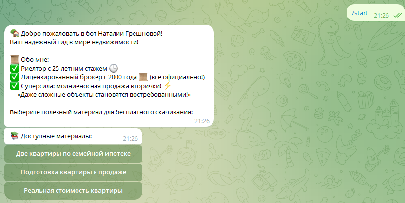Telegram-бот воронка для риелтора Разработали автоматизированного бота-помощника для риелторов, который решает проблему прогрева холодной аудитории и её эффективного закрытия на контакт